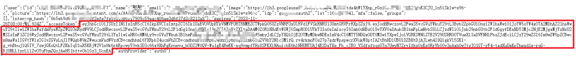 访问 https://chat.openai.com 并登录你的账号(不登录是获取不了的),接着再访问 https://chat.openai.com/api/auth/session 会出现下面界面将Access Token复制出来备用
