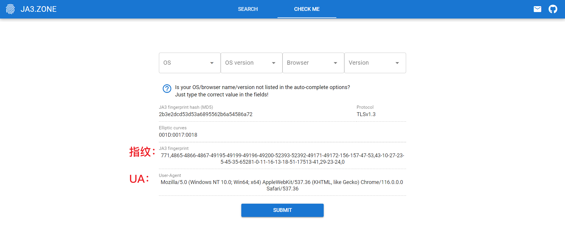 使用登录Claude的浏览器访问 https://ja3.zone/check ,如下所示: